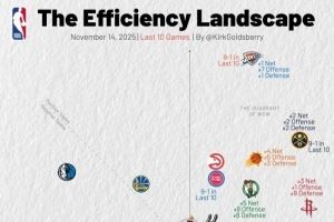 近10战火箭进攻效率第1/雷霆防守效率第1/掘金均第2 湖勇船皆攻弱